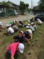 先日、あさがおのたねをまき、毎朝自分の用意を早く終わらせて、水やりをしていた子どもたち。