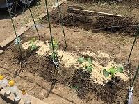 まずは村上さんと、教頭先生がキュウリのつるが巻き付くネットを設置してくれました。