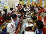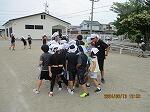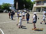 昨日の雨天とは打って変わって、暑い日差しが降り注ぐ中、なかよし班活動が行われました。普通のドッジボールとルールは同じですが、今回は当たったらその場で自己紹介をします。所属学級、名前、好きな○○をグループのみんなに言いました。
