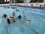 みんなで楽しく、流れるプールを作ったり、「バタ足」や「けのび」の練習をしたりしました。