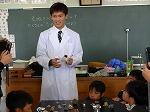 昨日、6年生の「大地のつくりと変化」の学習の導入の時間に、地質学に詳しい新潟大学の村松さんが、大地に埋まっているものを紹介しに、たくさんの鉱物や化石などを持ってきて、授業のサポートをしてくれました。