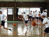 最後は、バスケットボールを使って、ドリブルリレーを行いました。