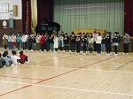 その後、「ゆき」と「たき火」を半分ずつの学年で同時に歌い、歌を楽しみました。