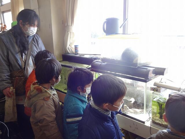 体調は15センチくらい。大人になると、水槽いっぱいになるとか。珍しい赤ちゃんにみんな大興奮。