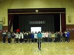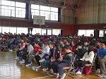 今年度最初の音楽集会は、「校歌」の練習です。1年生は上級生のの歌を聴いて、まねして歌います。