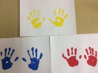 大きな画用紙に、手や指を使って自由にお絵かきをしました。