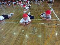 「うさぎ」「あざらし」「わに」そして、マットで「いもむし」など、楽しく体を動かしました。腕の力をつけておくと、骨折しにくくなりますので、いろいろな運動をとおして、楽しく体力を向上させていきたいと思います。