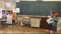 体育では、「ハリーポッターゲーム」というおにごっこをしました。魔女にタッチされると、魔法がかけられてしまいます。ひたすら「ジャンプ」「ターン」「けんけん」「かかし」などをしていなければいけません。その間に、こおりおにのように仲間が助けてくれるルールです。1、2組がみんなで楽しく遊んで、体育の時間は、交流が深まるとてもいい時間です。