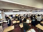 その後、2小節ずつ区切り練習しました。隣の人と向き合い、お互いの声を聴きながら歌う練習も行いました。