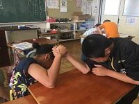席替えの度に行う仲よしの儀式「腕相撲」です。