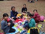 噴水の見える広場の落ち葉の絨毯の上でおいしくいただきました。