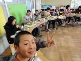 明日は卒業式。今日が四小での最後の給食です。卒業お祝いメニューをいただいてくださいな。