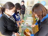 いよいよ給食が始まりました。さて、上手にできるかな。