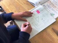 「作戦基地」である、ノートや教科書に、たくさんの手が。