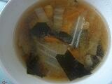 教のメニューは、ごはん、牛乳、鶏肉の七味焼き、おひたし、味噌汁です。旬の白菜がたくさん入った味噌汁です。これから、どんどん甘みを増す白菜です。