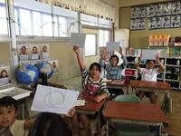 校舎には、6年生が準備してくれた雑巾で上履きをきれいにしてから入りました。