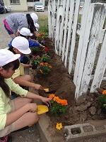人権擁護委員さんにいただいた、たくさんのお花を6年生が花壇に植えました。