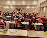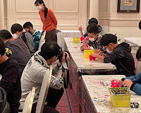 ホテルに着き、あかべこの絵付けを始めています。みんな真剣です。子どもたちの個性溢れるあかべこ、楽しみにしていてください。