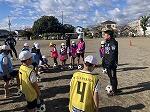 肌寒い気温の中、サッカー教室が開かれました。4年生の様子です。