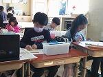 3、4時間目は図工で、エコ絵画コンクールの絵を描きました。ただ絵の具の色を塗るのではなく、水を含ませたり、他の色と混ぜて色を作ったり、グラデーションを入れたりするなど、立体感を出しながら描きました!