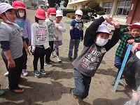 5つ目は、けいどろです。係のお友達は、休み時間から、こっそり牢屋の場所を決めて、線を書いてくれていました。