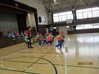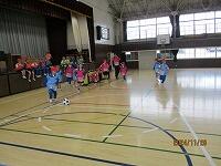 肌寒い気温の中、サッカー教室が開かれました。4年生の様子です。