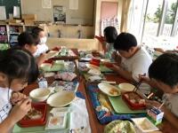 今日は『なかよし給食』がありました。四小でおいしい給食を作ってくださっている調理員さんたちや違う学年の友達と交流しながら、給食を食べました。