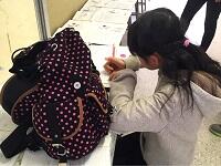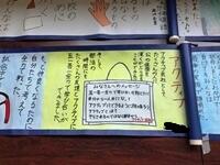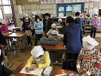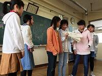四小タイムの集会の後、6年生が残した作品を見てメモする人が。