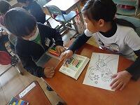 6つ目は、ぬり絵です。Rくんがディズニーが好きだから、グループできれいに塗ってプレゼントしました。