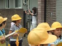 神明宮では学校代表で、先生とこども隊長が、たんけんの無事を祈願しました。