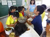 今日は、栄養士の横山先生が、朝から職員室で茹でて冷ましておいてくれました。3時間目、横山先生が教室に運んできてくれた箱の中に、えだまめが入っていました。大歓声!