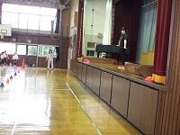 体育館で、5,6年生が何やら見ながら、体を動かしています。