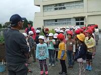 また、今日は農園に野菜の苗をうえました。やさい博士が登場です。