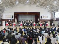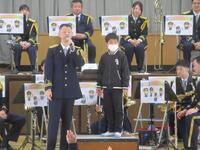 鑑賞だけではなく、代表児童が指揮に挑戦したり、楽隊の伴奏にあわせて校歌を歌ったりしました。