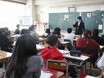 たくさんの保護者に見守られ、緊張しながら授業にのぞみました。