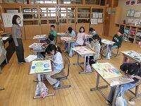 2年生は図工で制作していた作品が仕上がって、タイトルを考えているところでした。