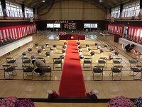 終了後に体育館に戻り、保護者も加わり記念撮影。