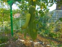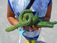 右のキュウリは育ちすぎ?というビッグサイズで、まるでゴーヤやズッキーニのようでした。