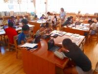 6年生の教室では、休み時間にもかかわらず夢中で短歌作りをしていました。