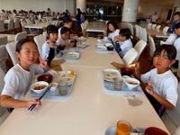 給食は、子供達の多くが楽しみにしている時間です。当番の子供達は、手際よく給食を分けていきます。