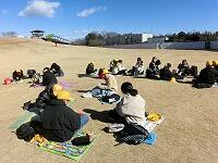 近くの公園でランチタイム。食べるときは風も穏やかで過ごしやすかったようです。