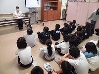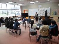 身体測定の前に会議室でミニ授業。養護の先生から保健指導を受けます。
