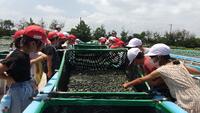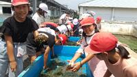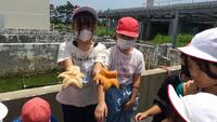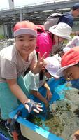 栽培漁業センターでは、ヒラメにエサをあげたり、タッチプールでヒラメやウニ、ヒトデなどにさわりました。