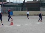 3か所で同時展開。低、中、高学年に分かれ、仲良くやっていました。