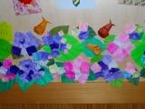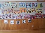 今日は、地域のボランティアの皆様に、多目的室の壁の飾り付けを行っていただきました。毎月、季節に合った飾り付けを行っていただいています。いつもありがとうございます。