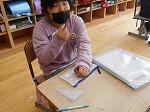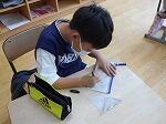 今日は、配られたポーチに、ていねいに名前を書いて、三角定規をしまいました。