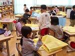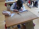 2年生は、三角定規をしまっておく透明なポーチの使い方を先生から教わっていました。これは、この後も、学年があがるにつれて、コンパスや分度器なども一緒にしまい、算数セットが完成するのです。