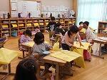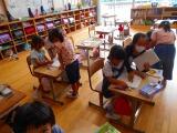 今年度、地域の読み聞かせボランティアの皆様には、年間で22回の読み聞かせを行っていただきました。毎回、各学年の子どもたちに会わせた本や紙芝居を選んでいただき、子どもたちの、本への興味関心を高めていただきました。その記録(学年ごとに読んでいただいた本)が図書室前の壁面に掲示されています。