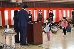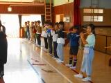 はじめに、修了証の授与です。各学年の代表児童に合わせて、該当学年の児童が起立して、同じ動作を行いました。