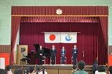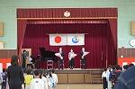 全校児童の校歌斉唱です。きれいな歌声が体育館に響いていました!!